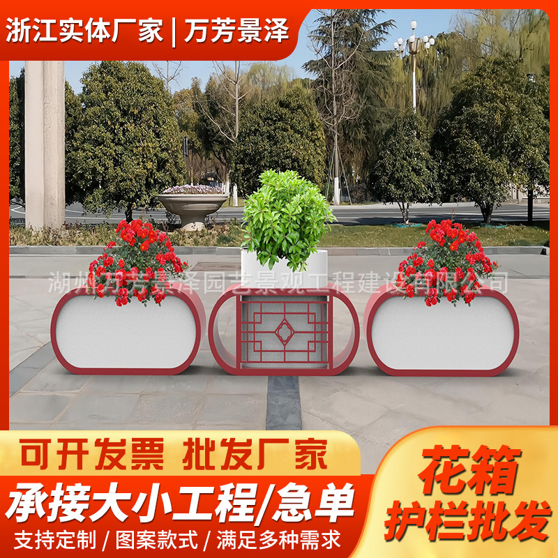市政花箱护栏中央隔离护栏户外花槽铁艺金属机非隔离文化道路护栏
