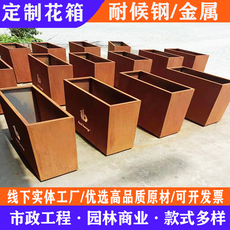 多种户外铁锈色钢板花箱围栏耐候钢花箱花盆花池江苏耐腐蚀花坛