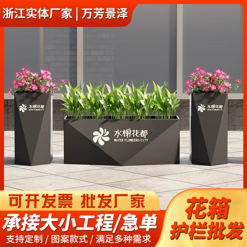 户外铁艺花箱围栏室外摆街道不锈钢花槽长方形花盆售楼部广场花坛