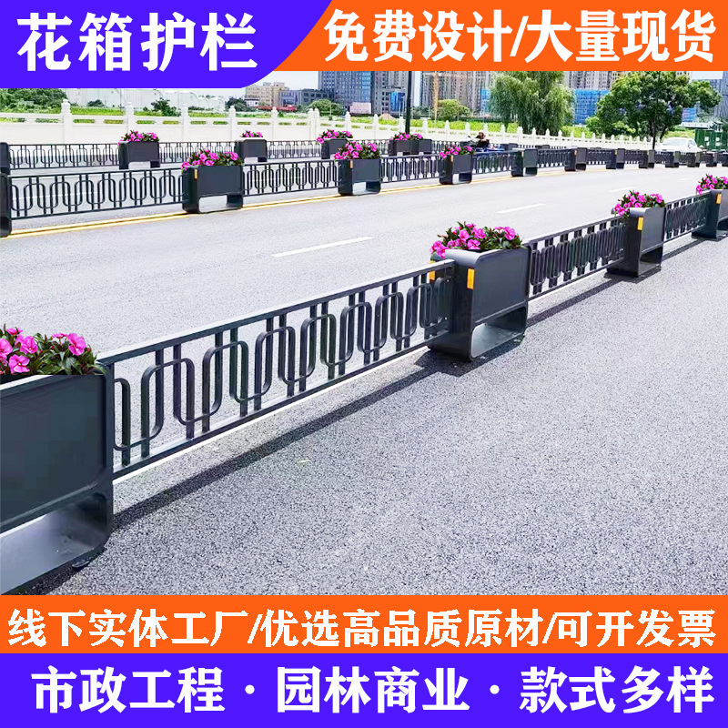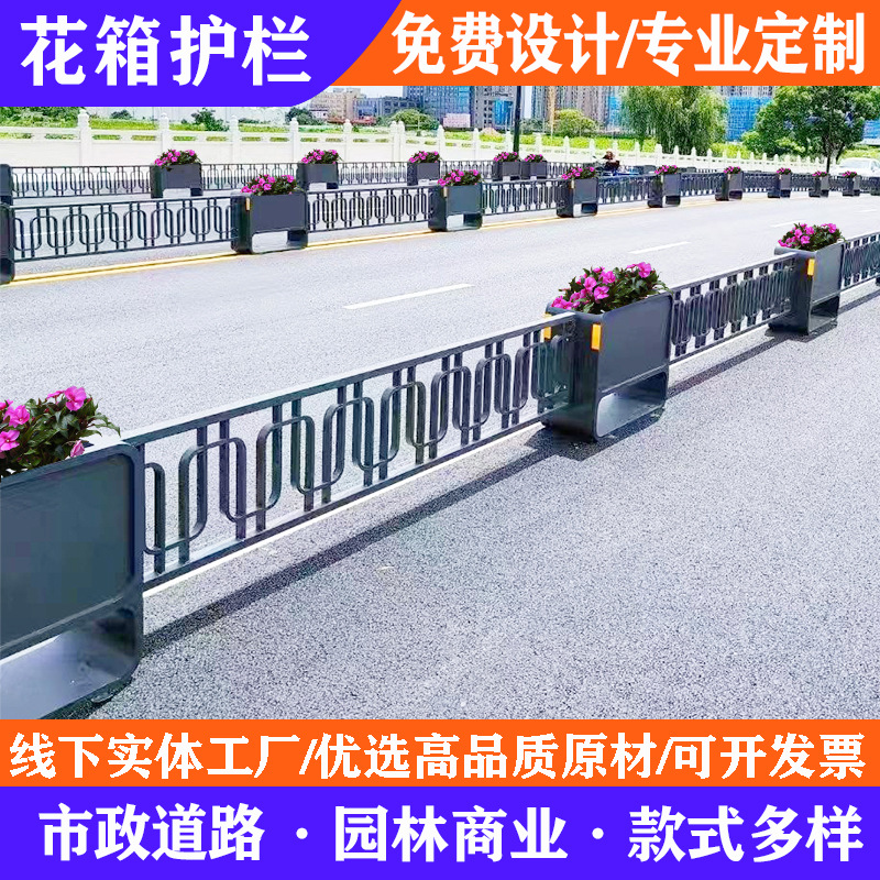定/制市政道路隔离花箱护栏组合不锈钢铁艺马路栅栏人行道栏杆