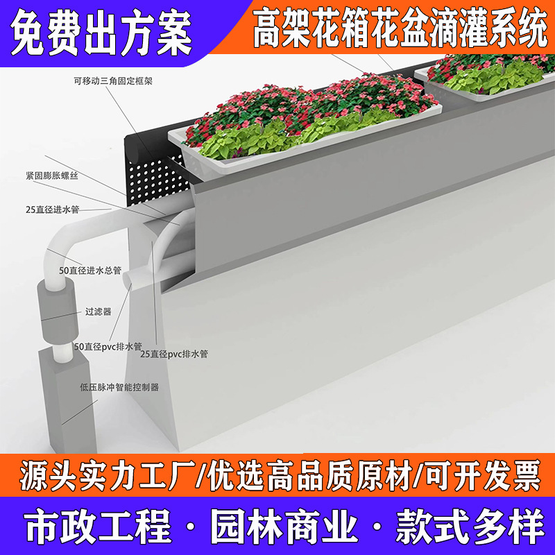 高架桥花盆花箱塑料pp置顶式桥梁花盆滴灌天桥波浪市政塑料花盆