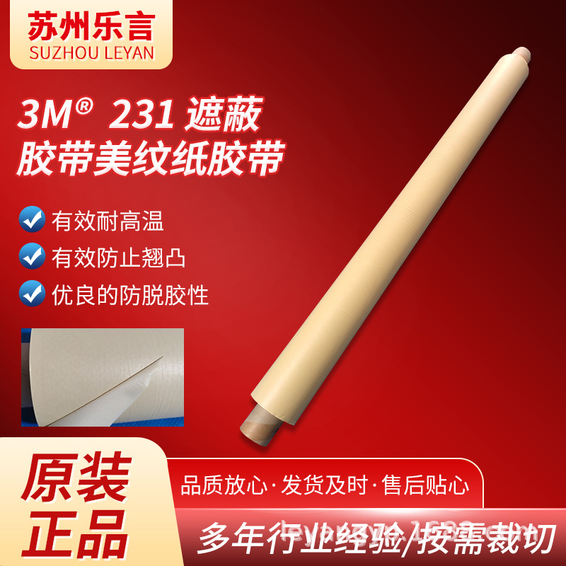 3M231高粘无痕汽车精密分界家具喷漆遮蔽耐温强力易撕美纹纸胶带