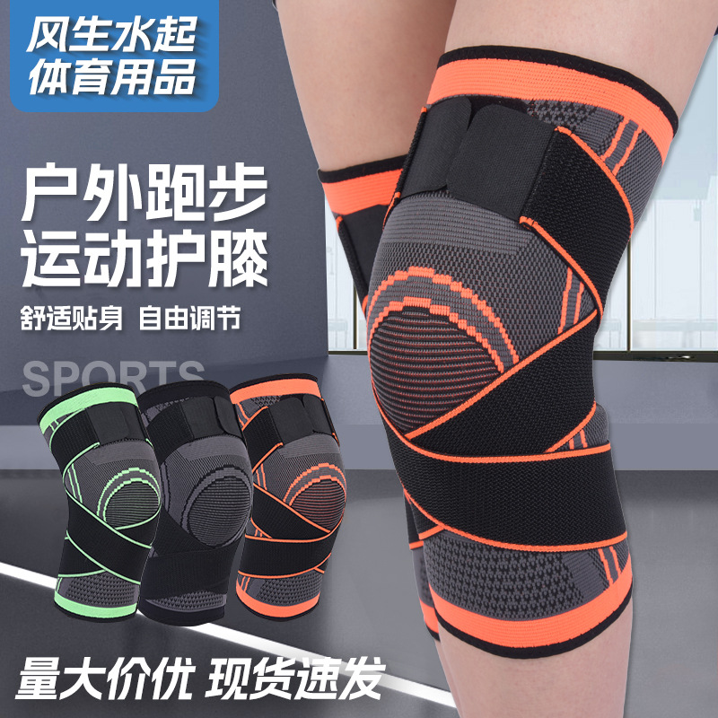 运动加压护膝跑步骑行篮球绑带护膝 透气护膝针织加压护膝