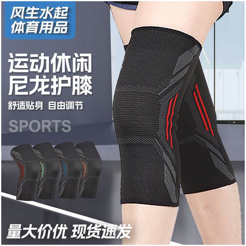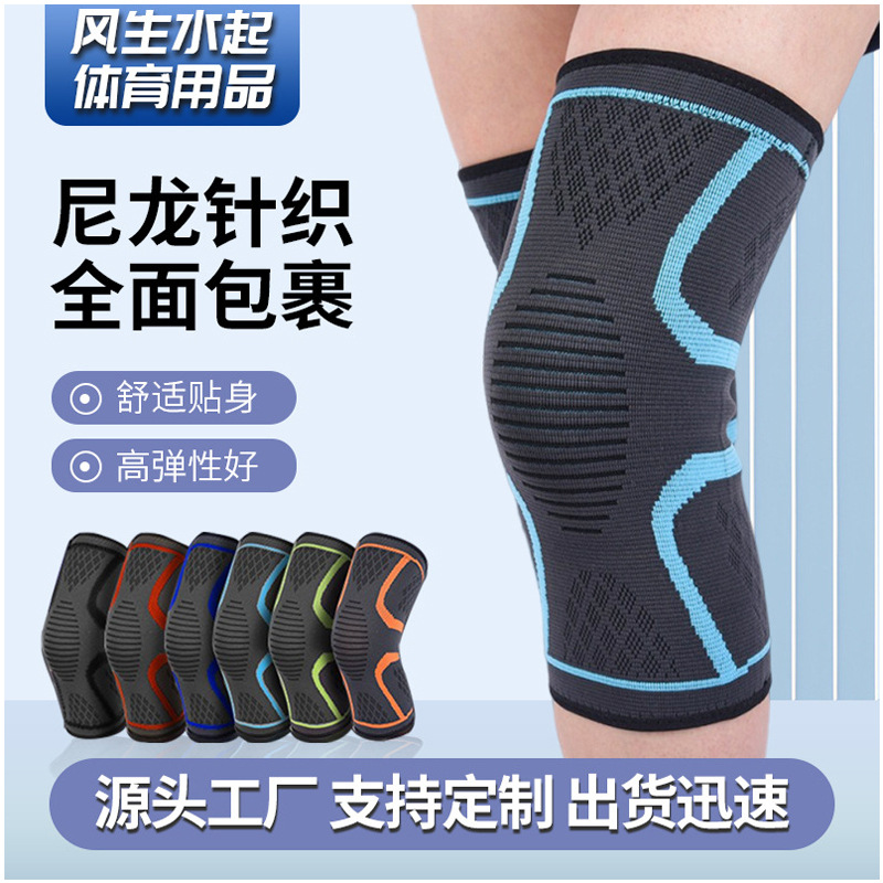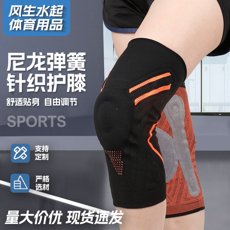 批发硅胶护膝针织运动护膝 尼龙弹簧加压护膝篮球护膝减震跳跃