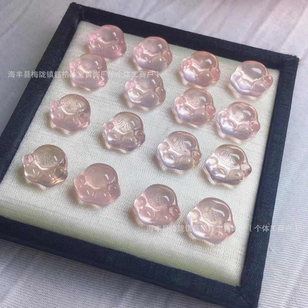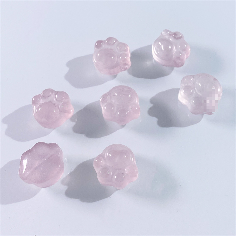 天然粉晶猫爪配珠diy手链项链吊坠卡通可爱粉嫩水晶小配饰批发