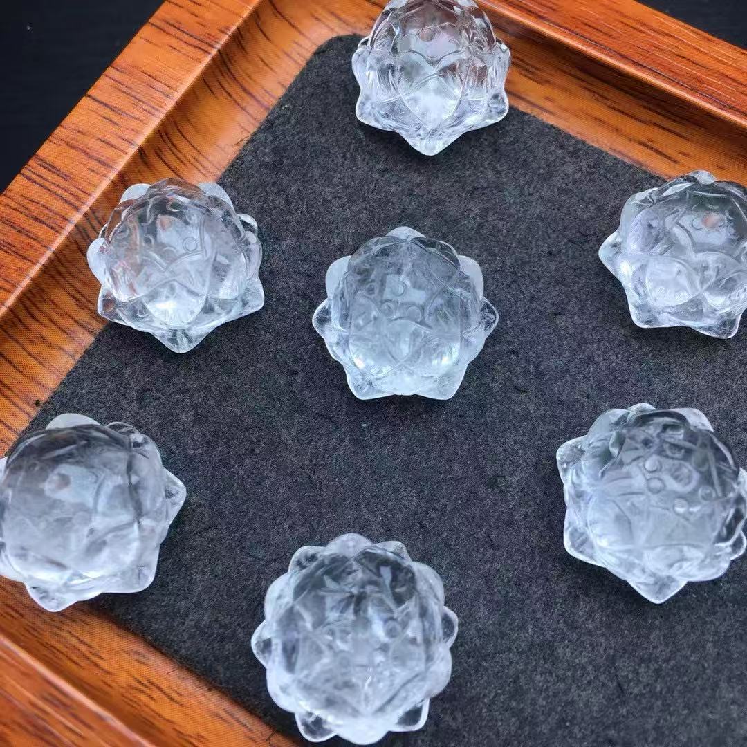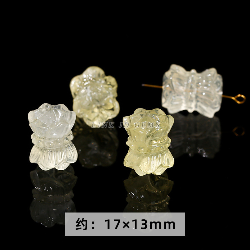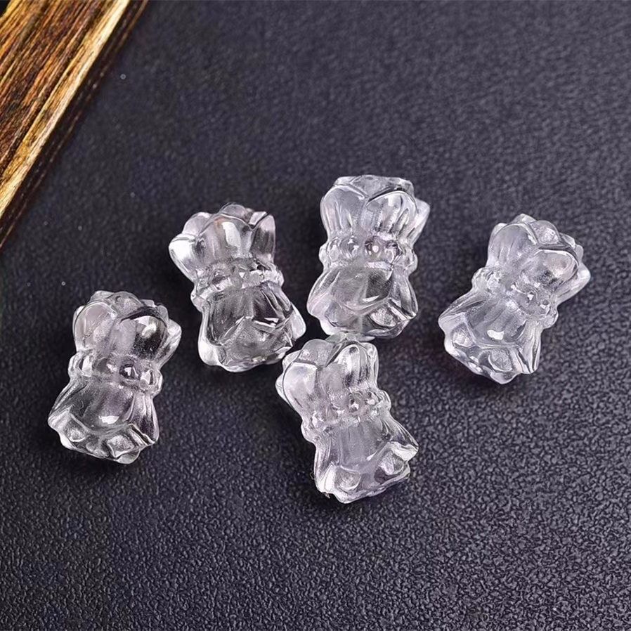 天然白水晶莲花座手工雕刻项链手链手串配饰带通孔直播货源批发