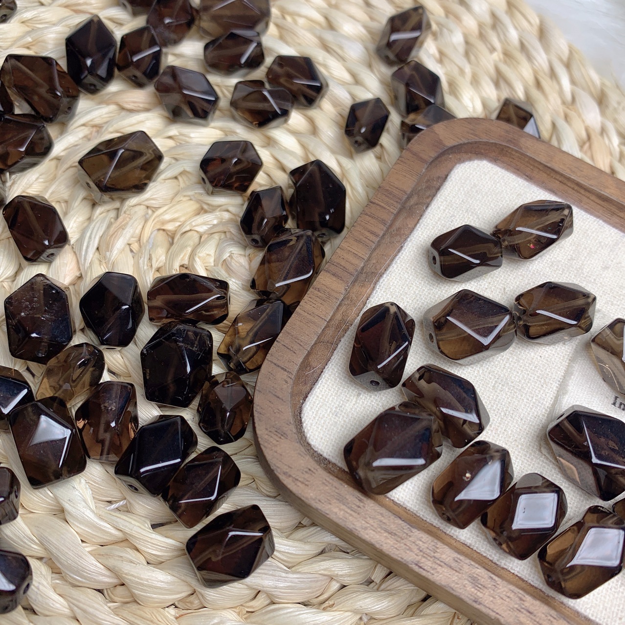 天然不规则随形状净体茶水晶烟晶单珠子散珠diy手工饰品文玩手链