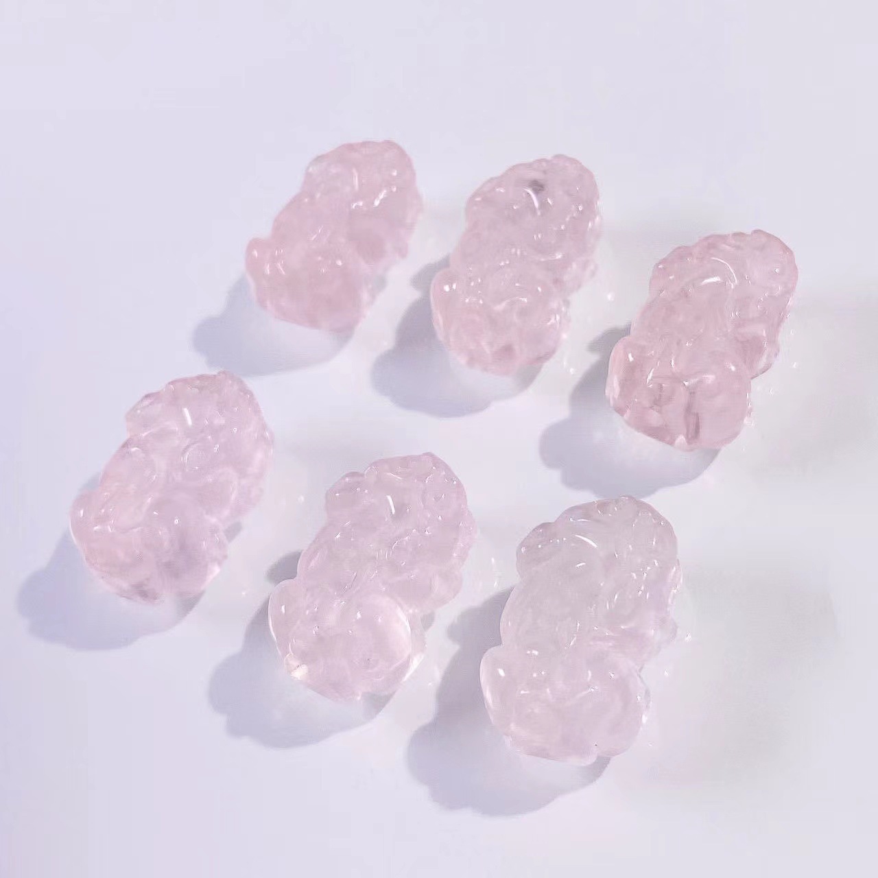天然粉水晶雕刻歪头貔貅diy手链项链挂件配件水晶雕刻件货源批发