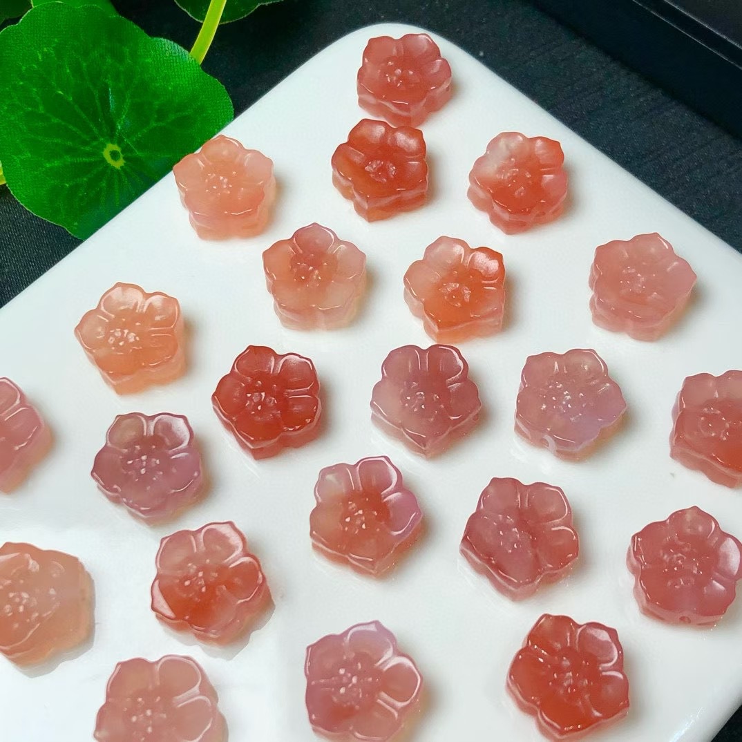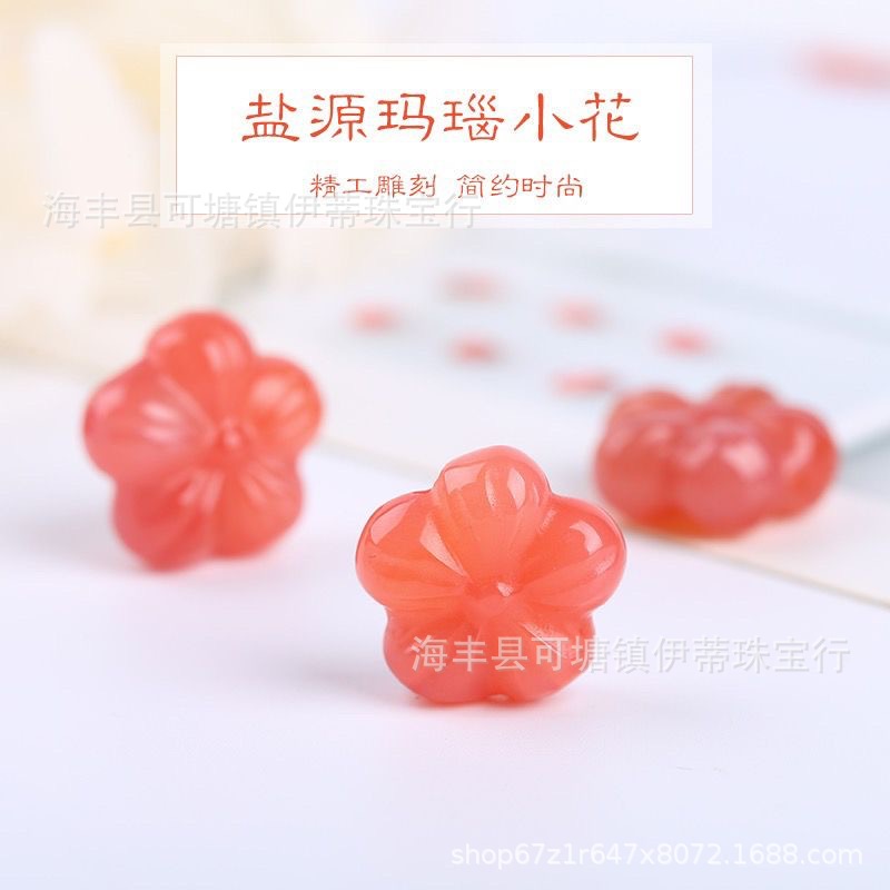 天然盐源玛瑙樱花配饰绯红玛瑙小花配珠diy通孔配件粉嫩可爱批发