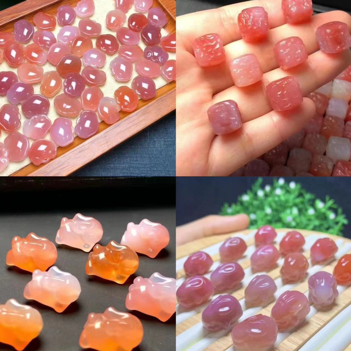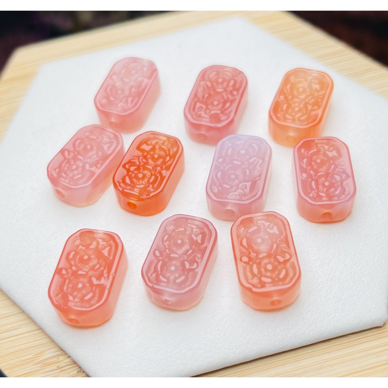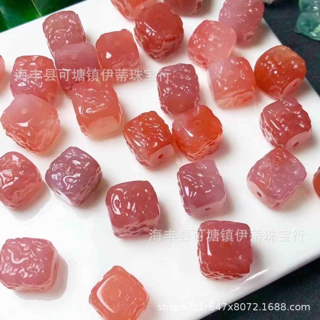 天然盐源玛瑙绯红花牌双面雕刻diy手链手串挂件时尚饰品货源批发