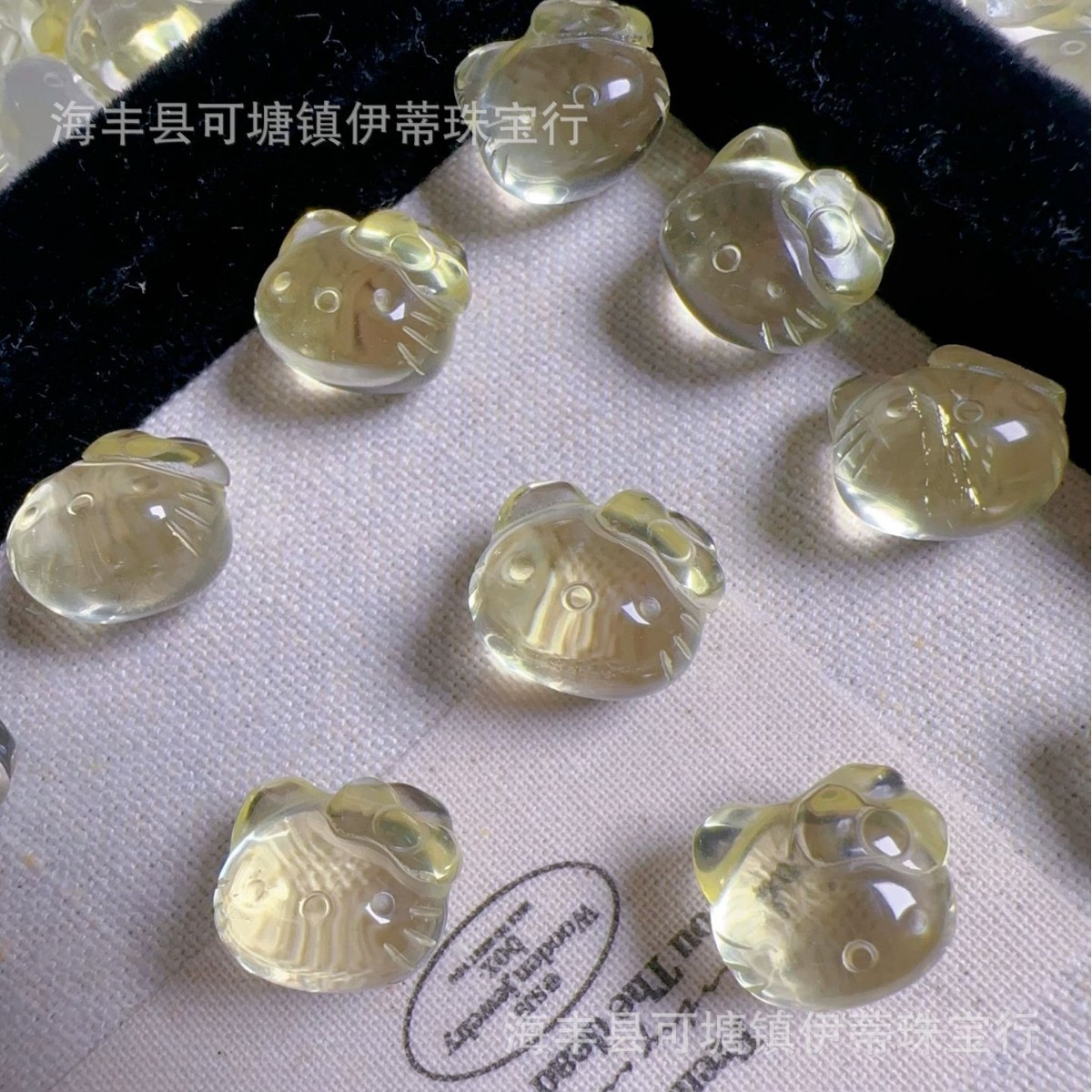 天然水晶kitty猫头柠檬晶凯蒂猫水晶雕刻件diy项链手链少女心配饰