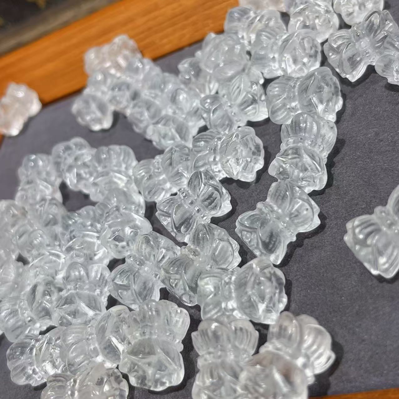 天然白水晶并蒂莲配件DIY文玩手链项链隔珠莲花配珠饰品配饰批发