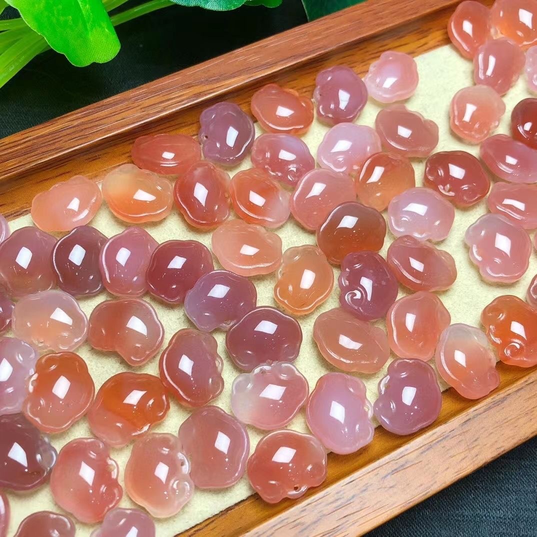 天然盐源玛瑙绯红貔貅配饰diy手链手串手机挂件雕刻件饰品批发