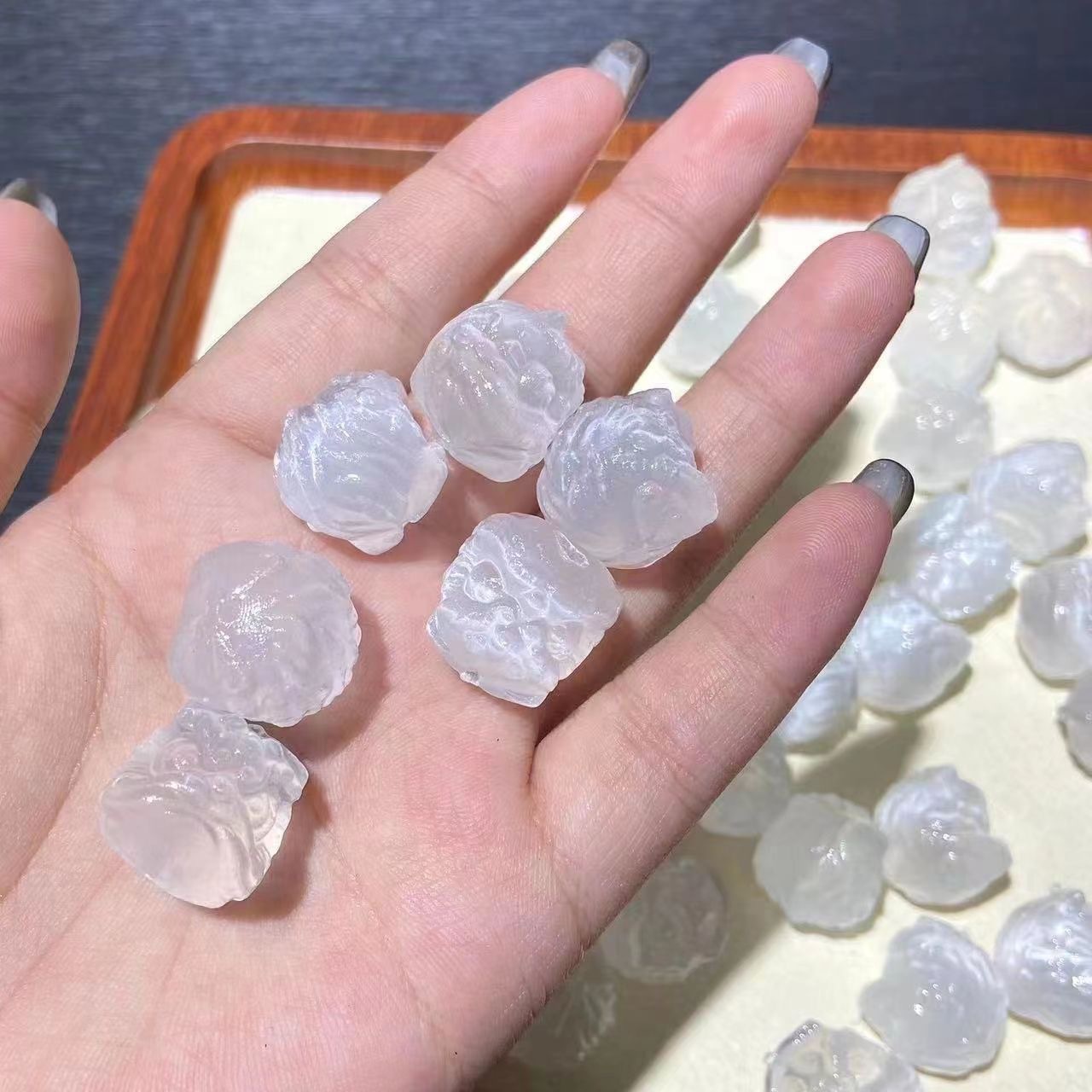 天然白水晶屁桃配饰爱心雕刻件DIY手链项链小众少女心货源批发