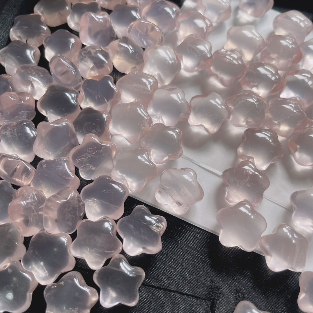 天然粉晶五角星水晶雕刻件五角星配件吊坠diy挂件小提溜货源批发