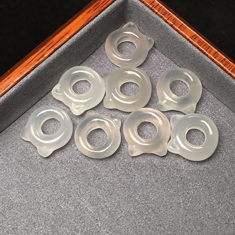 天然白玛瑙猫耳朵圈圈荔枝冻跑环猫耳卡环卡圈可爱饰品配件挂件