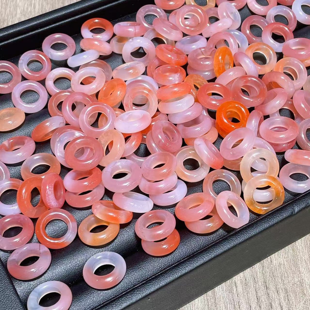 天然盐源玛瑙跑环绯红圆圈粉红圆环面包圈吊坠diy手链项链配件