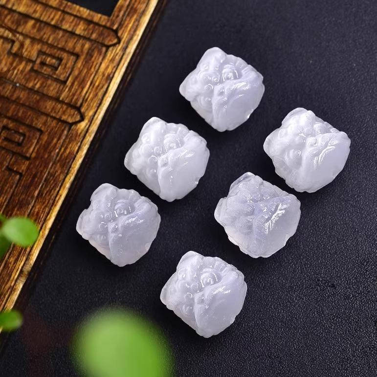 爆款猫眼醒狮头透石膏石雕刻件冰透体diy项链手链立体醒狮配饰批