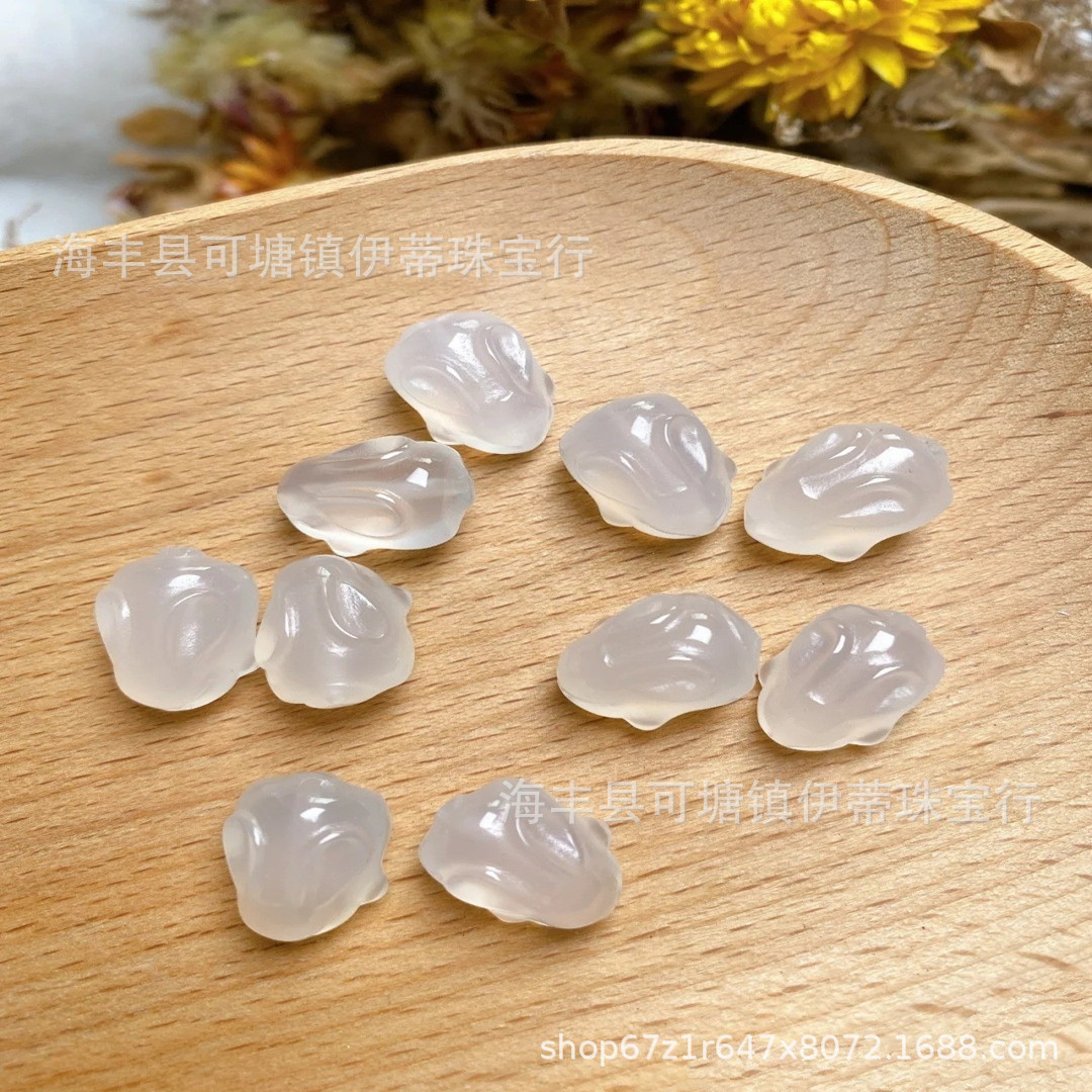 天然白玛瑙荔枝冻趴趴兔配饰DIY手串手链挂件吊坠配件批发