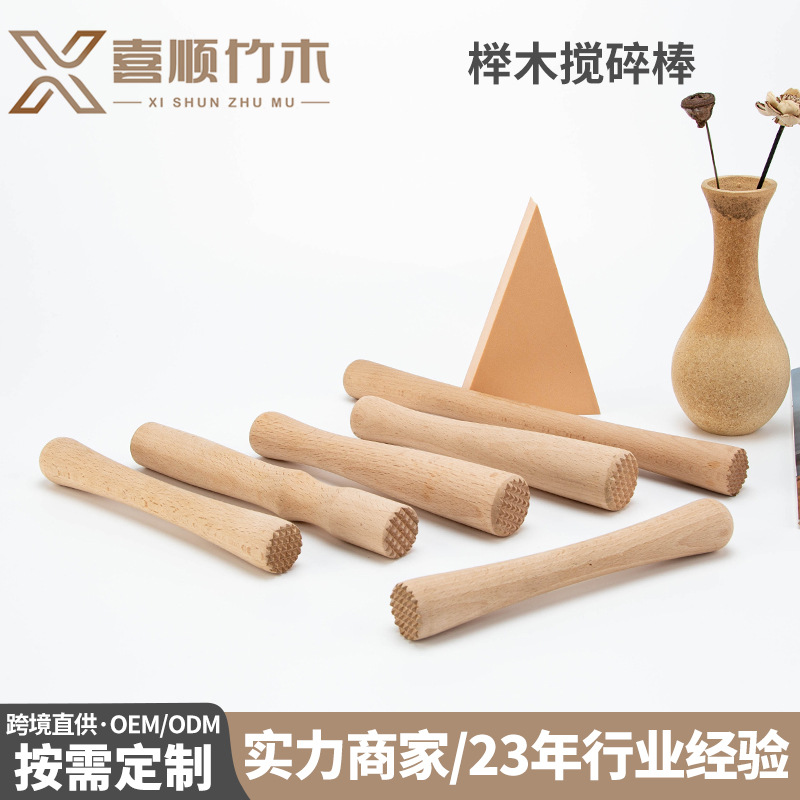 定制木质搅碎棒食物研磨棒婴儿辅食搅碎棒实木手动捣药捣蒜棒