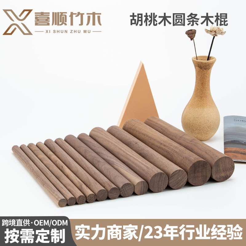 厂家直供黑胡桃木圆条木棍建筑手工模型实木圆棍武术棍瑜珈木圆条