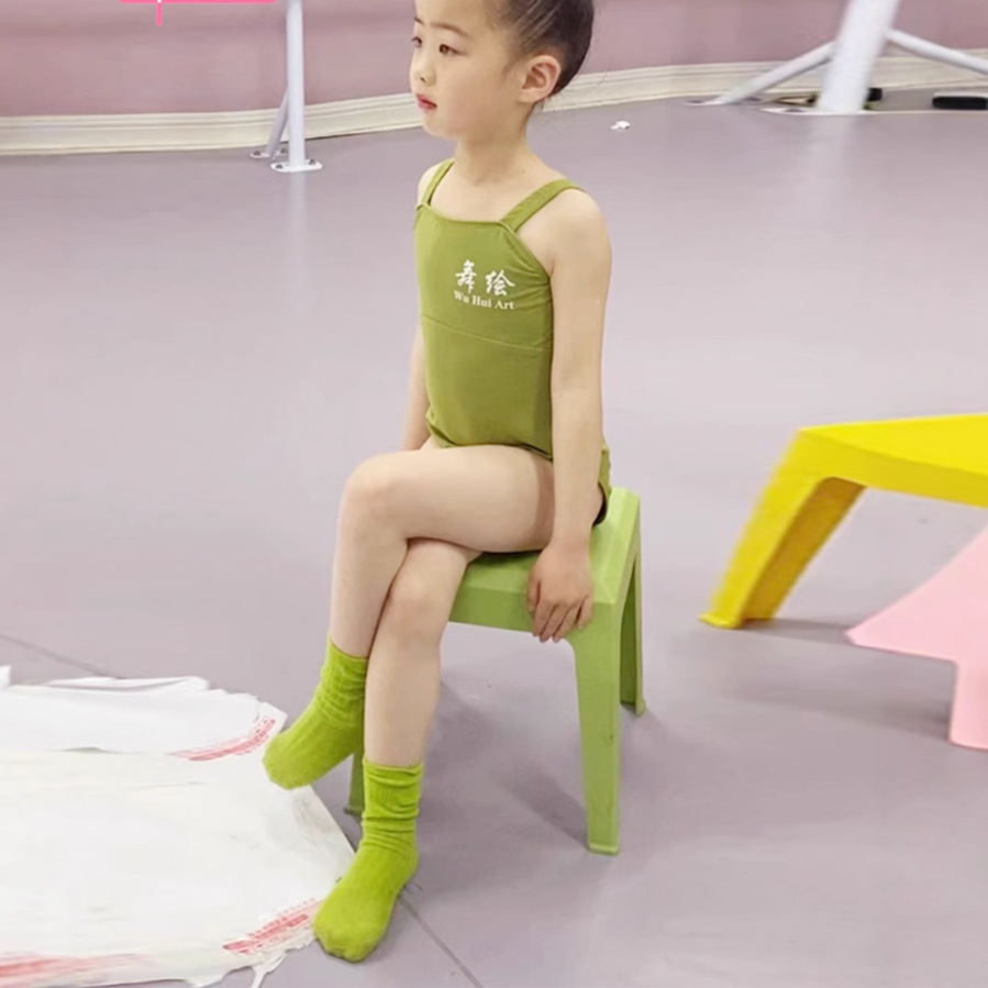 儿童舞衣女吊带夏季裙女童形体检定考试民族芭蕾舞中国舞练功服绿