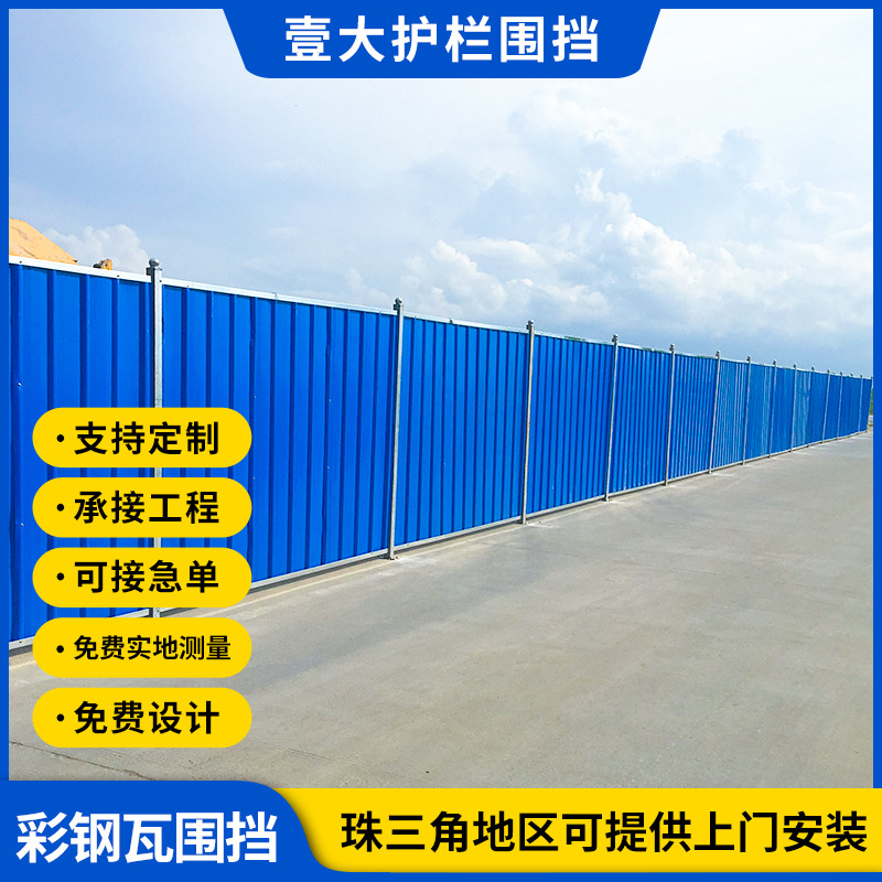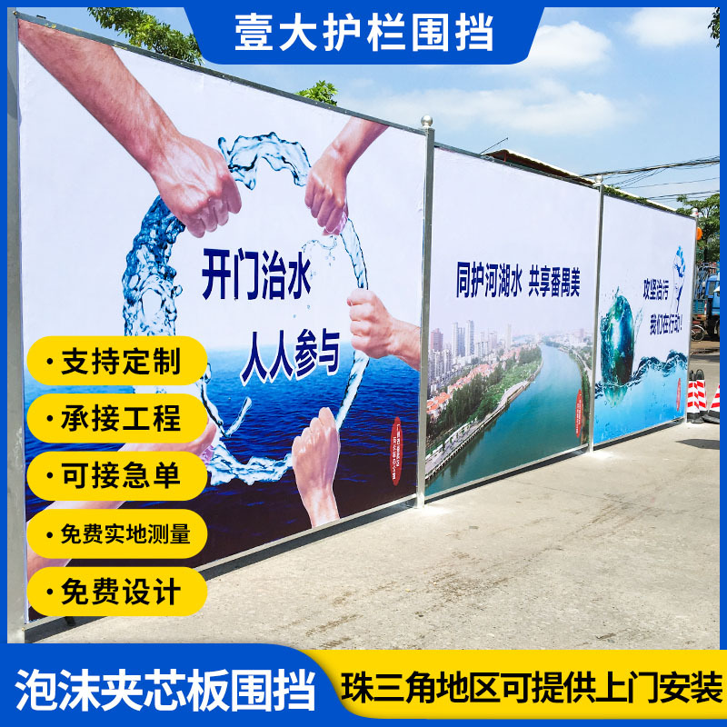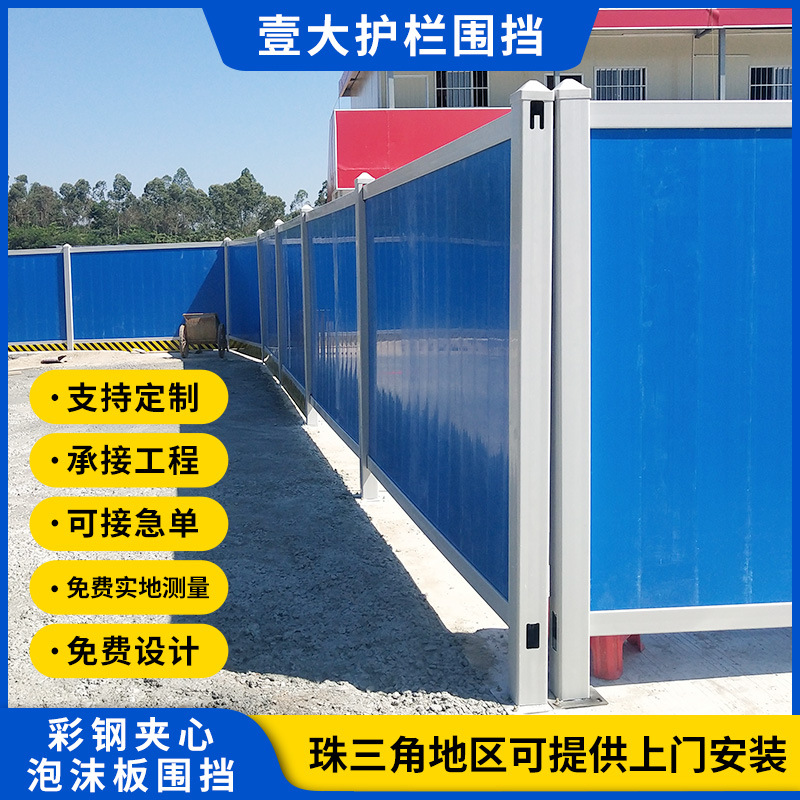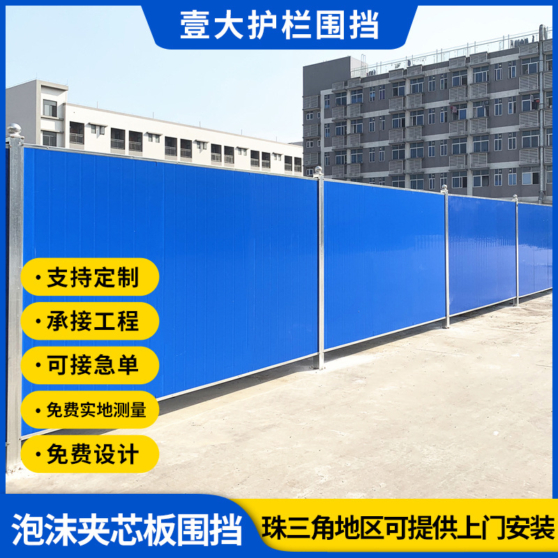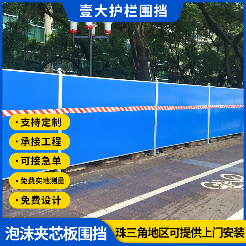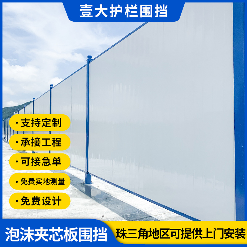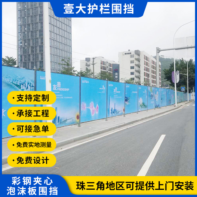 广州施工围挡市政临时工程道路围蔽泡沫夹芯彩钢挡板建筑工地围挡