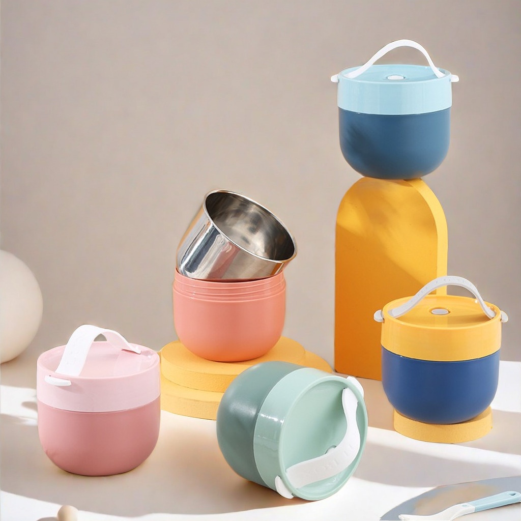 汤碗304不锈钢内胆密封带盖防漏微波加热便捷提手塑料碗餐具厂家