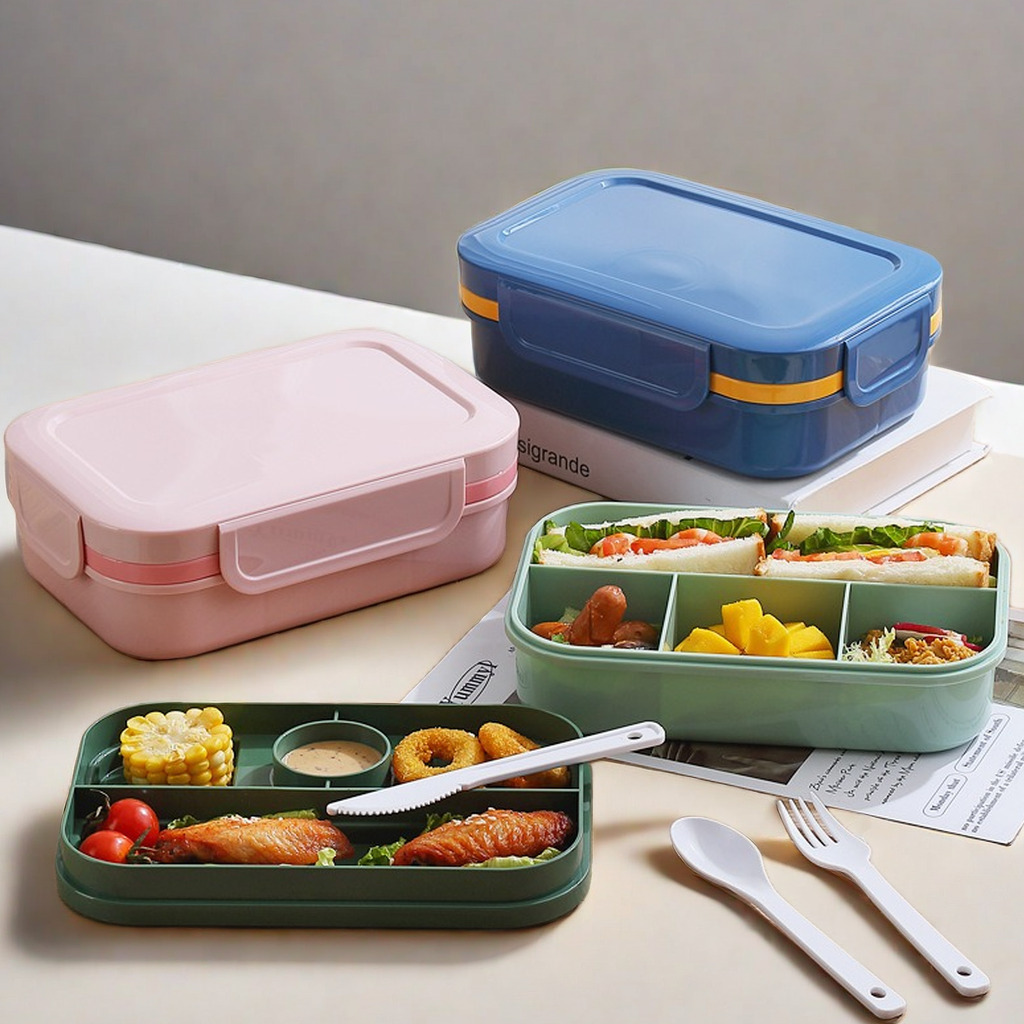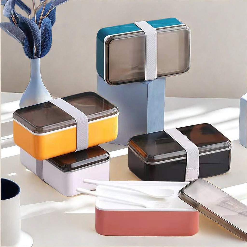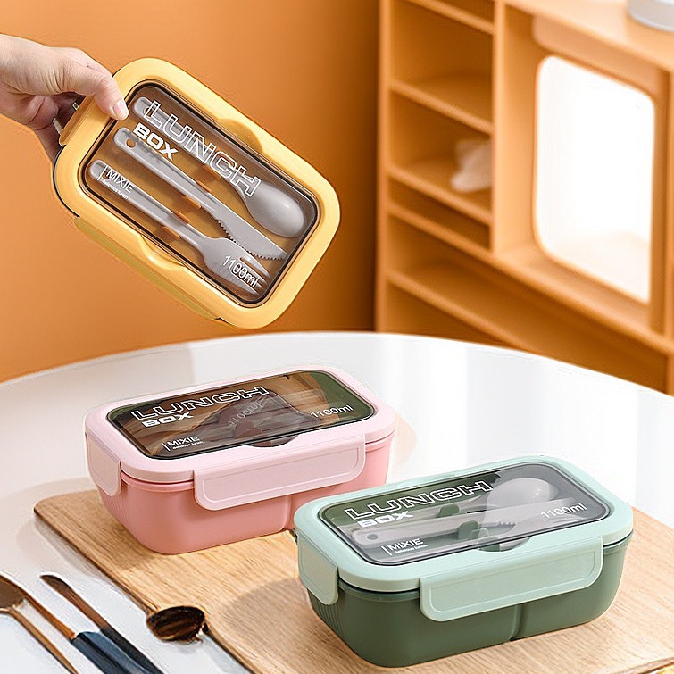 日式学生饭盒带盖密封带餐具可微波炉加热保温上班族午餐盒便当盒