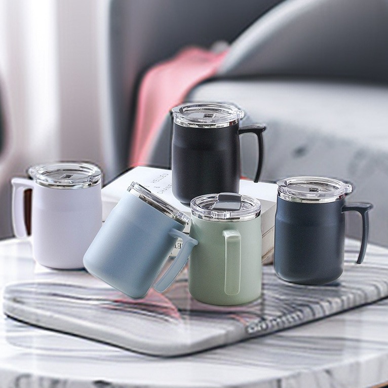马克杯不锈钢防摔带盖学生宿舍刻度牛奶杯男女家用水杯办公咖啡杯