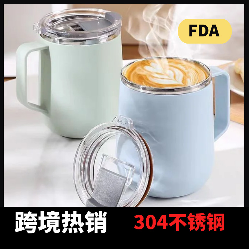高颜值304不锈钢马克杯带盖便携家用办公室随手杯咖啡杯水杯吸管