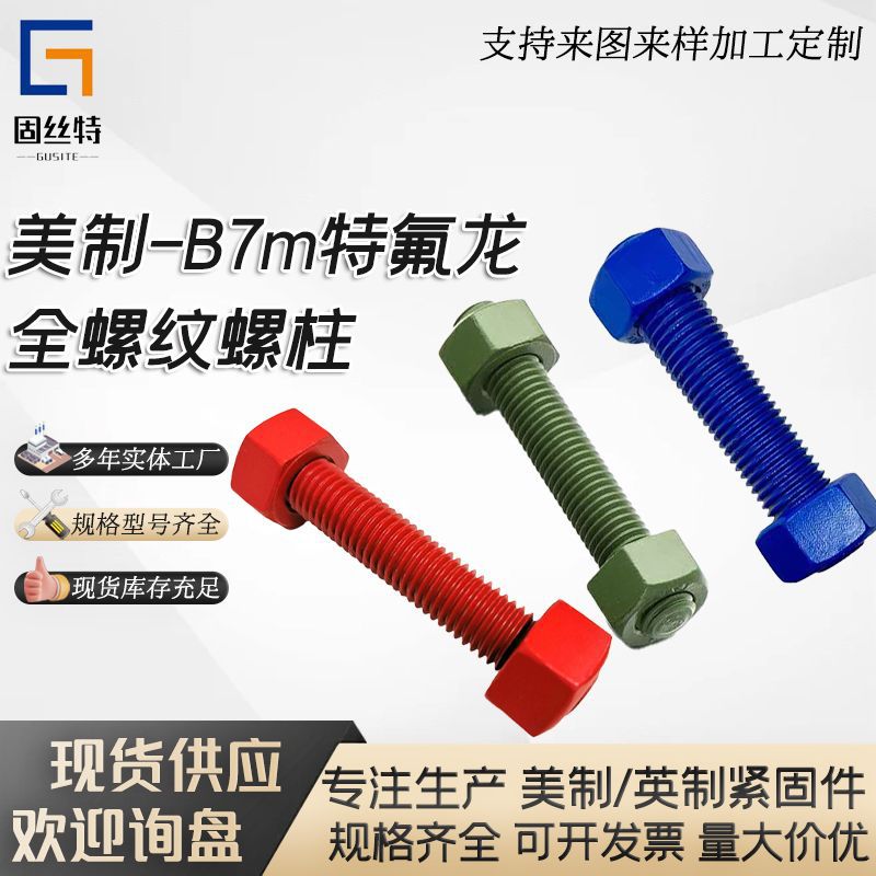 高强度8.8级固定螺柱美制B7m特氟龙全螺纹螺柱外六角双头牙条螺栓