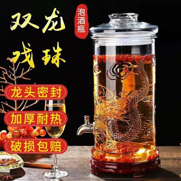 批发双龙泡酒瓶加厚玻璃泡酒坛子10斤15斤带龙头药酒瓶发酵玻璃瓶