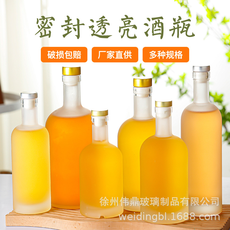 500ml伏特加蒙砂玻璃酒瓶 白酒瓶果酒分装瓶密封冰酒瓶空瓶批发