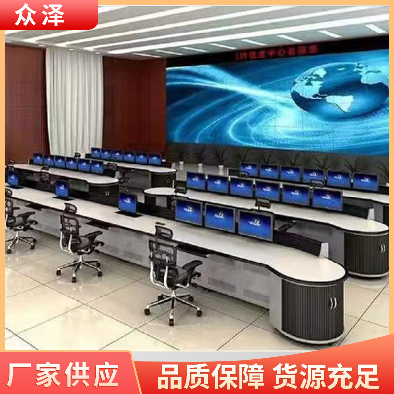 定制监控操作台物业指挥中心监控系统双三联控制台弧形监控操作台