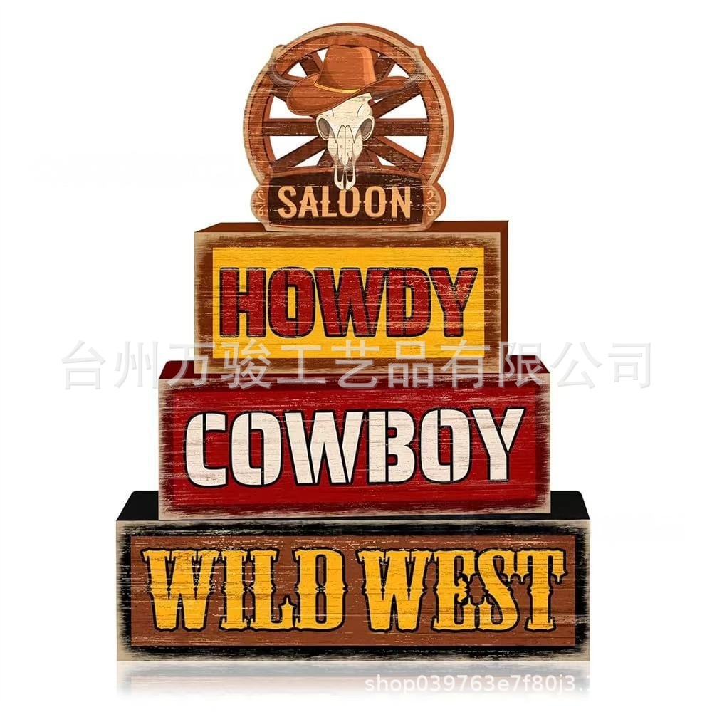 跨境4 件套西式分层托盘装饰套装牛仔帽堆叠积木标志沙漠农舍乡村