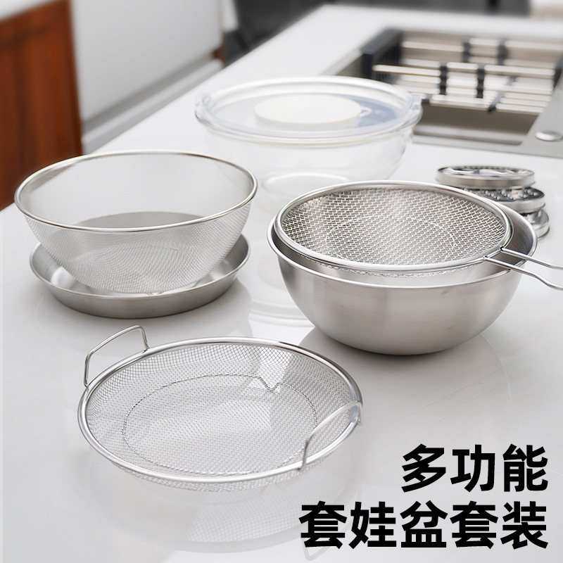 PURECOOK套娃盆304不锈钢厨房备菜洗菜沥水篮十件套滤油网料理盆