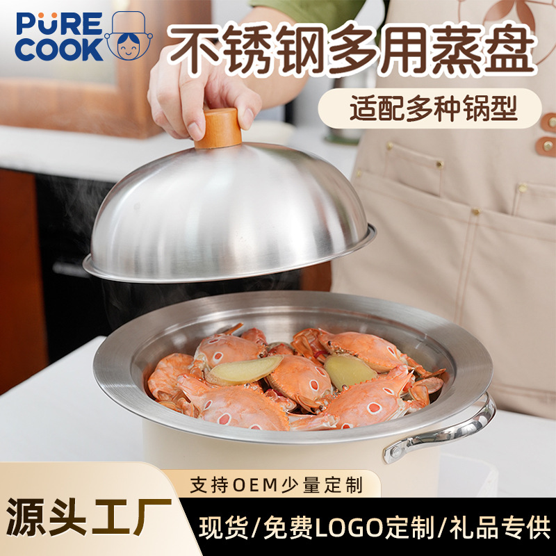304不锈钢飞碟蒸盘带盖 加厚加深蒸笼 蒸海鲜鱼盘 家用果蔬沥水盘