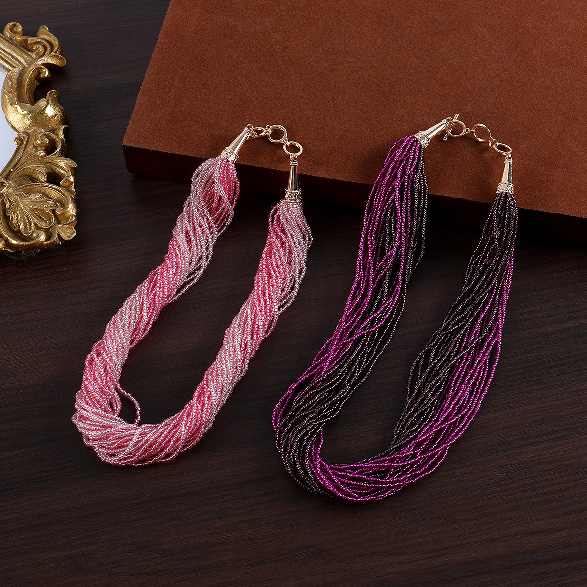 欧美新款复古波西米亚风多层串珠项链女夸张大气手工编织颈链批发