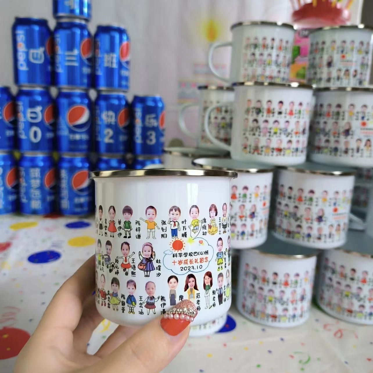 幼儿园搪瓷水杯手绘印图照片儿童毕业礼物伴手礼送老师礼物老式杯