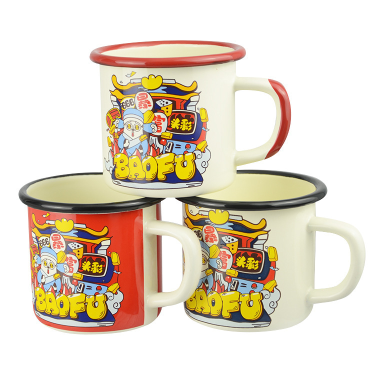 出口批发网红金属口杯欧美品质搪瓷口杯高温烤花搪瓷杯厂家直供