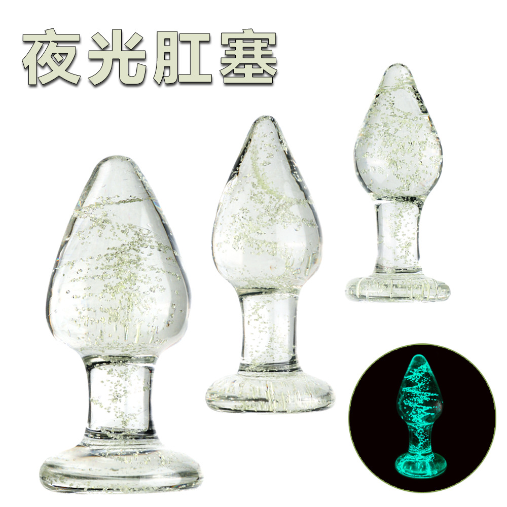 批发女用后庭用品夜光玻璃肛塞成人情趣发光肛门栓圆润实心性玩具