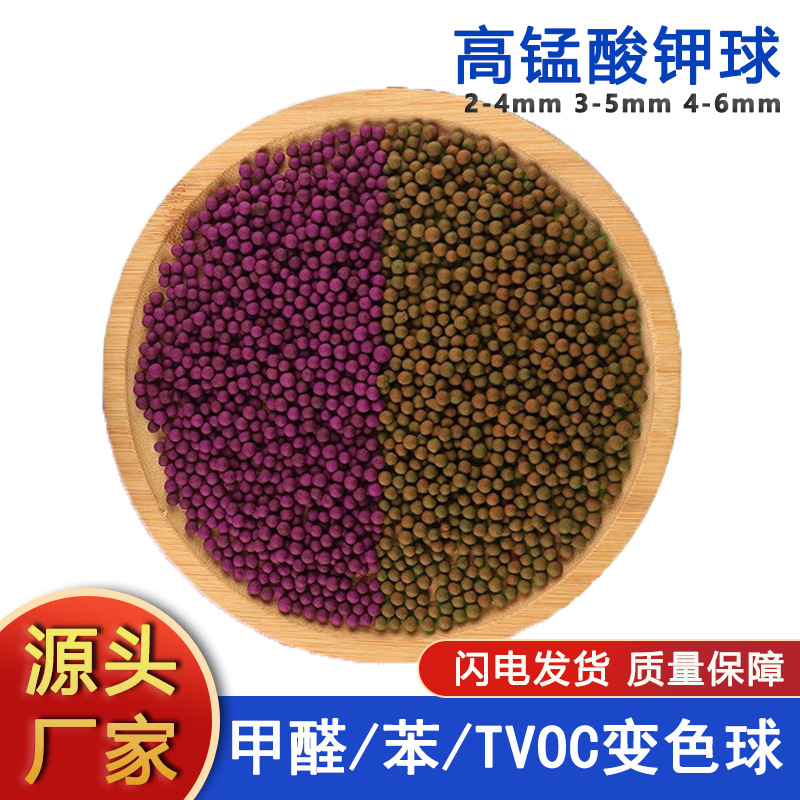 直供高锰酸钾变色球臭气吸附甲醛苯TVOC高锰酸钾球3-5/4-6mm紫球