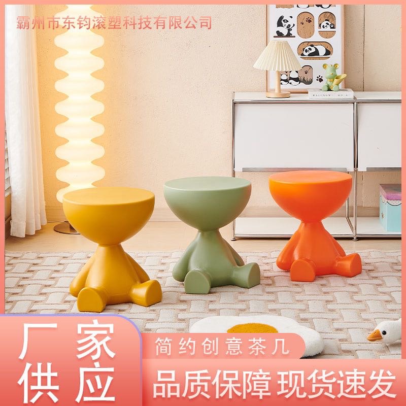 奶油风茶几网红家用客厅落地摆件阳台卧室圆桌塑料创意小平头茶几