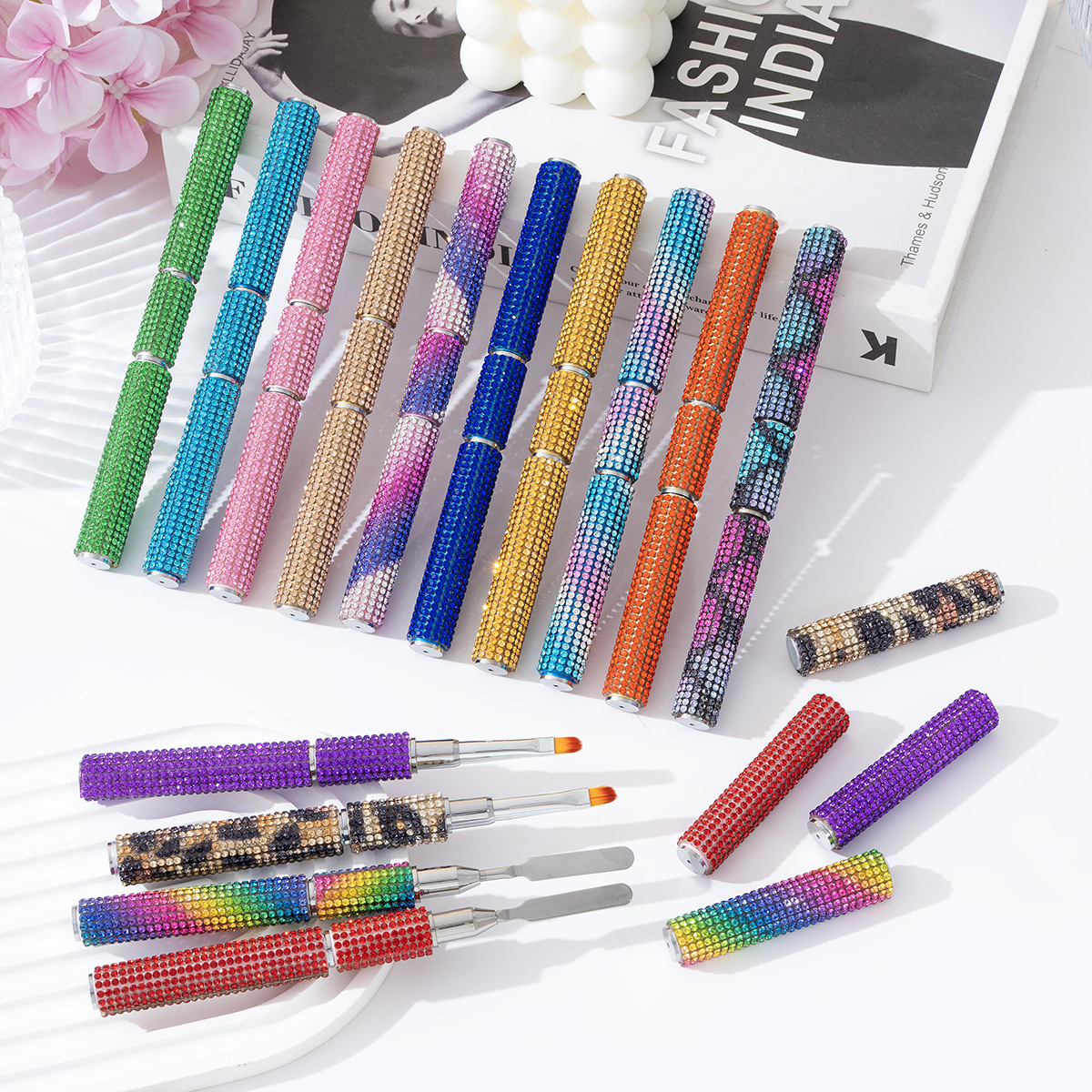 跨境镶钻美甲笔刷新款带钻美甲扇形笔扇形刷2种颜色可选指甲笔刷