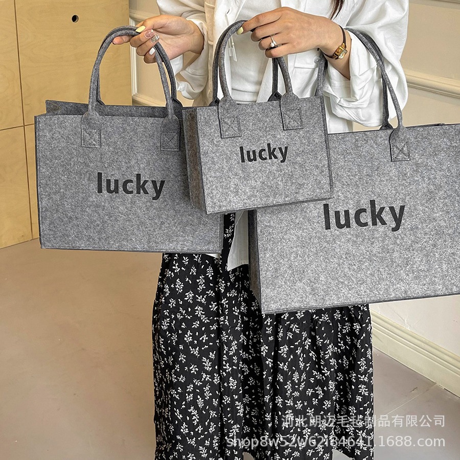 新款毛毡手提包 小红书抖音爆款ins风简约毛毡包托特包购物袋