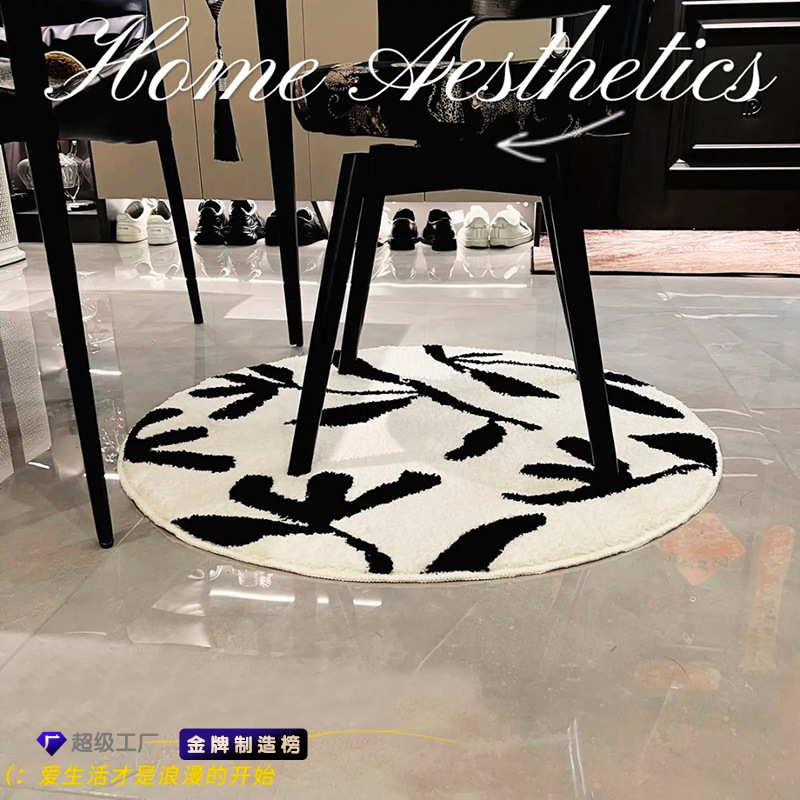 黑白简约圆形植绒地毯北欧In风高级感地垫梳妆台防滑隔凉床边地毯
