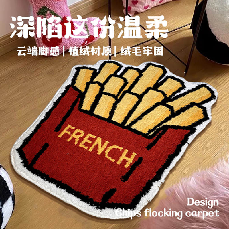 创意美式薯条植绒地毯卧室耐脏易打理儿童爬爬垫亚马逊货源批发