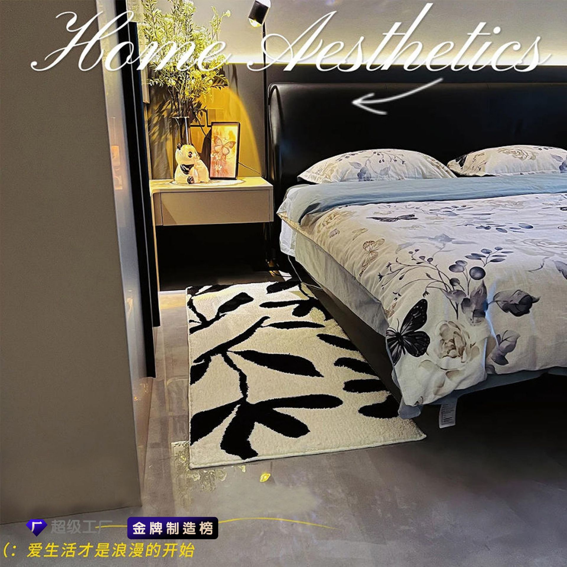 黑白简约床边毯花草线条衣帽间隔凉防滑脚垫加厚柔软植绒地垫