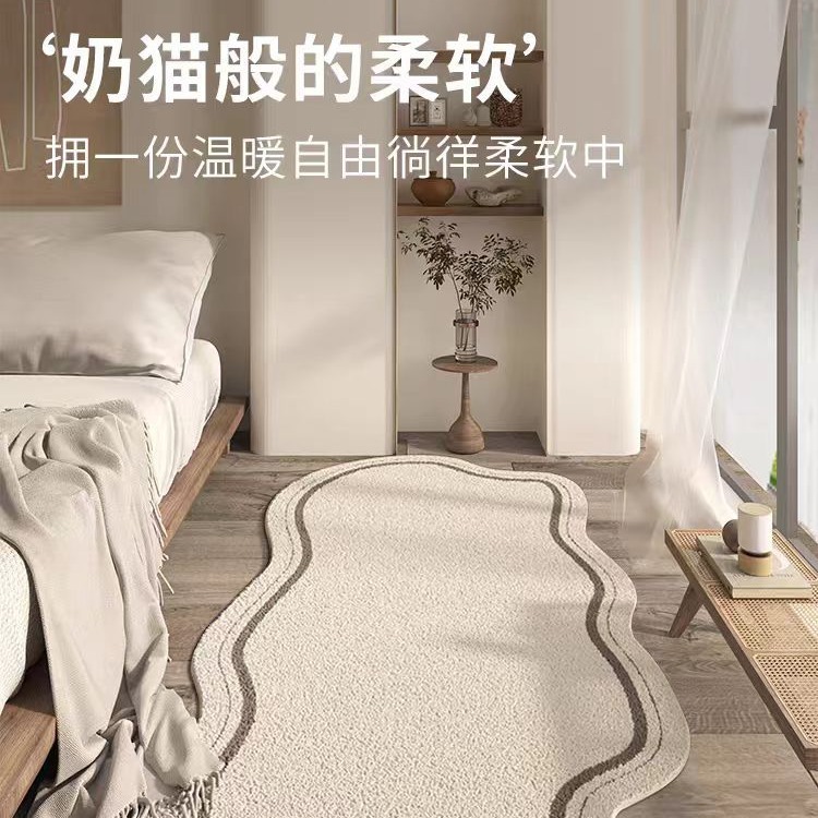极简轻奢高级感云朵床边地毯不规则长条地毯防污耐脏卧室沙发地垫